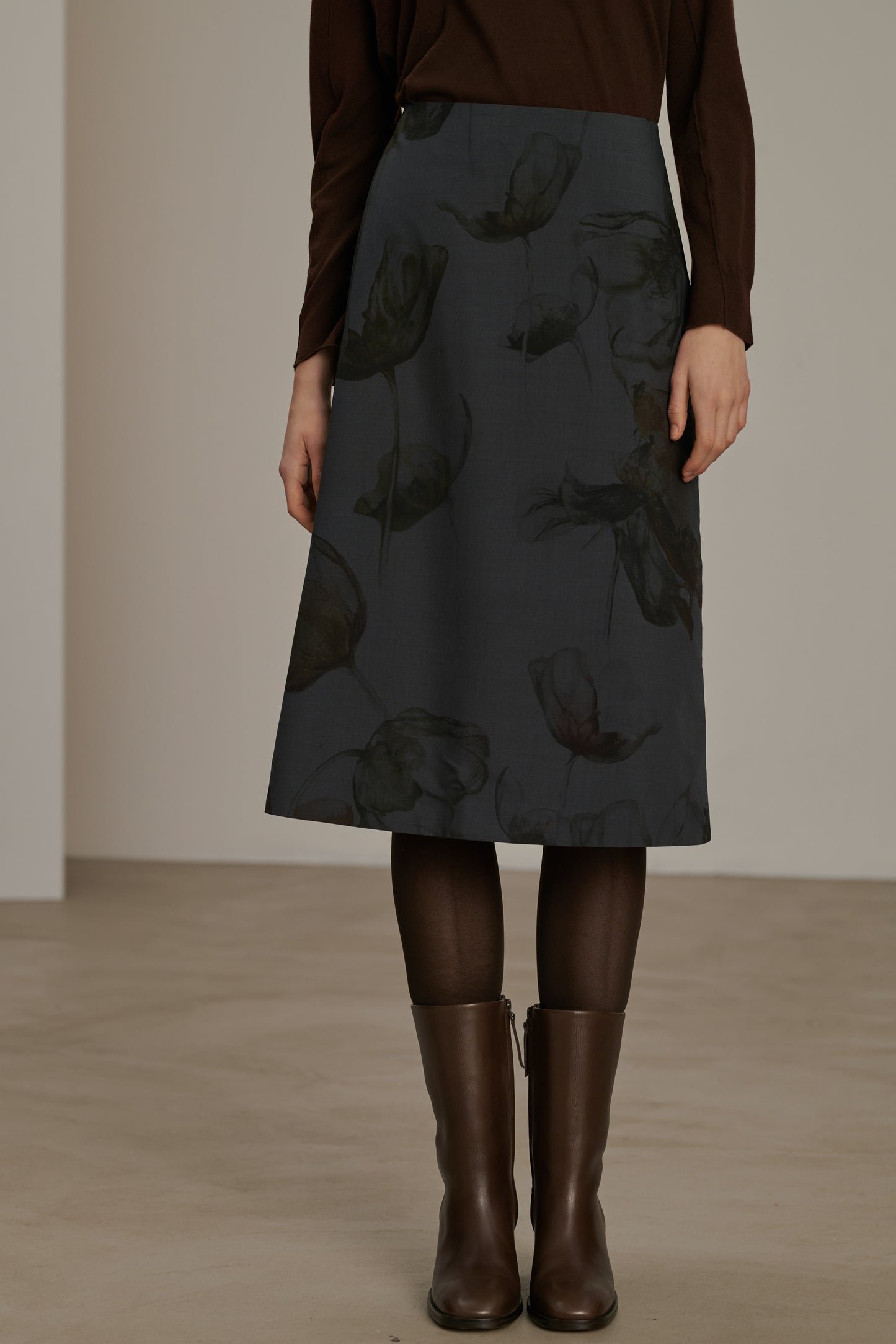 VALET is a skirt crafted from printed wool canvas. Perfect for a modern and sophisticated look, this skirt stands out with its unique print, adding a touch of creativity to your outfits.